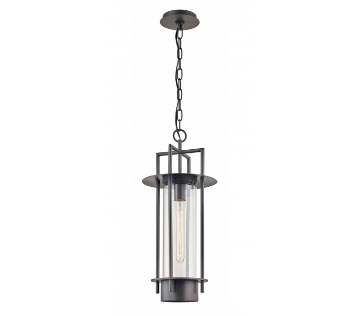 Carroll Park udendørs loftlampe udført i et design i aldret bronzelakeret stål og med skærm i klart glas. Lampen måler 68 - 248 cm i højden og anvender 1 x E27 T10 lyskilde.