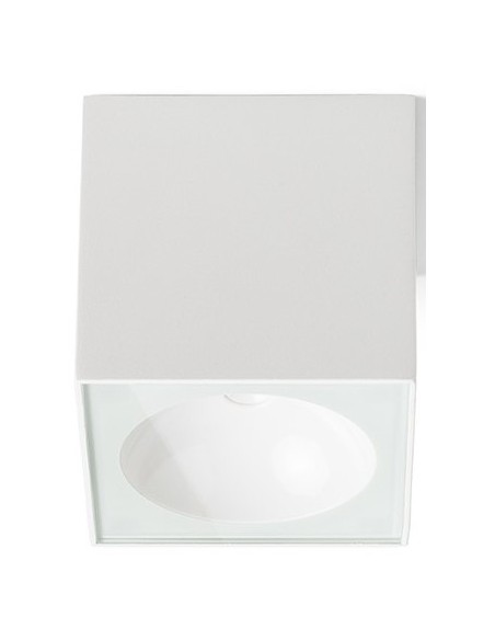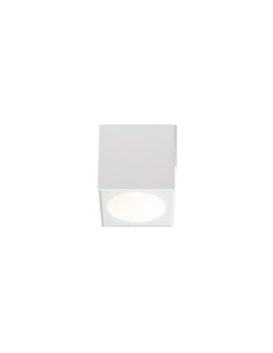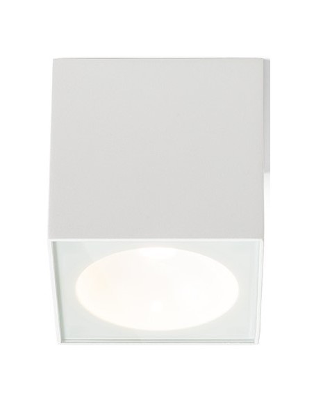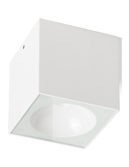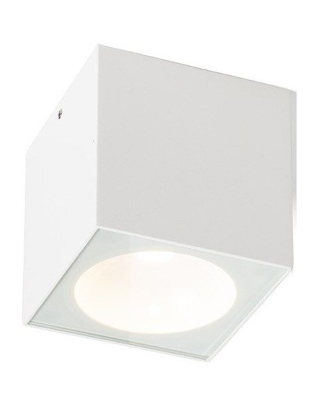 Påbygningsspot lampe til udendørs brug i et design, fremstillet i hvidfarvet aluminium. Lampen har indbygget LED lyskilde på 6W og måler 9 x 9 cm i bredde og dybde.