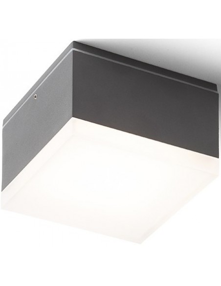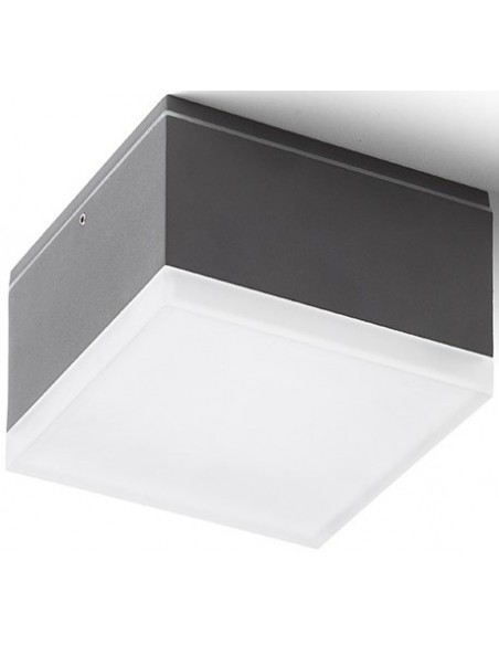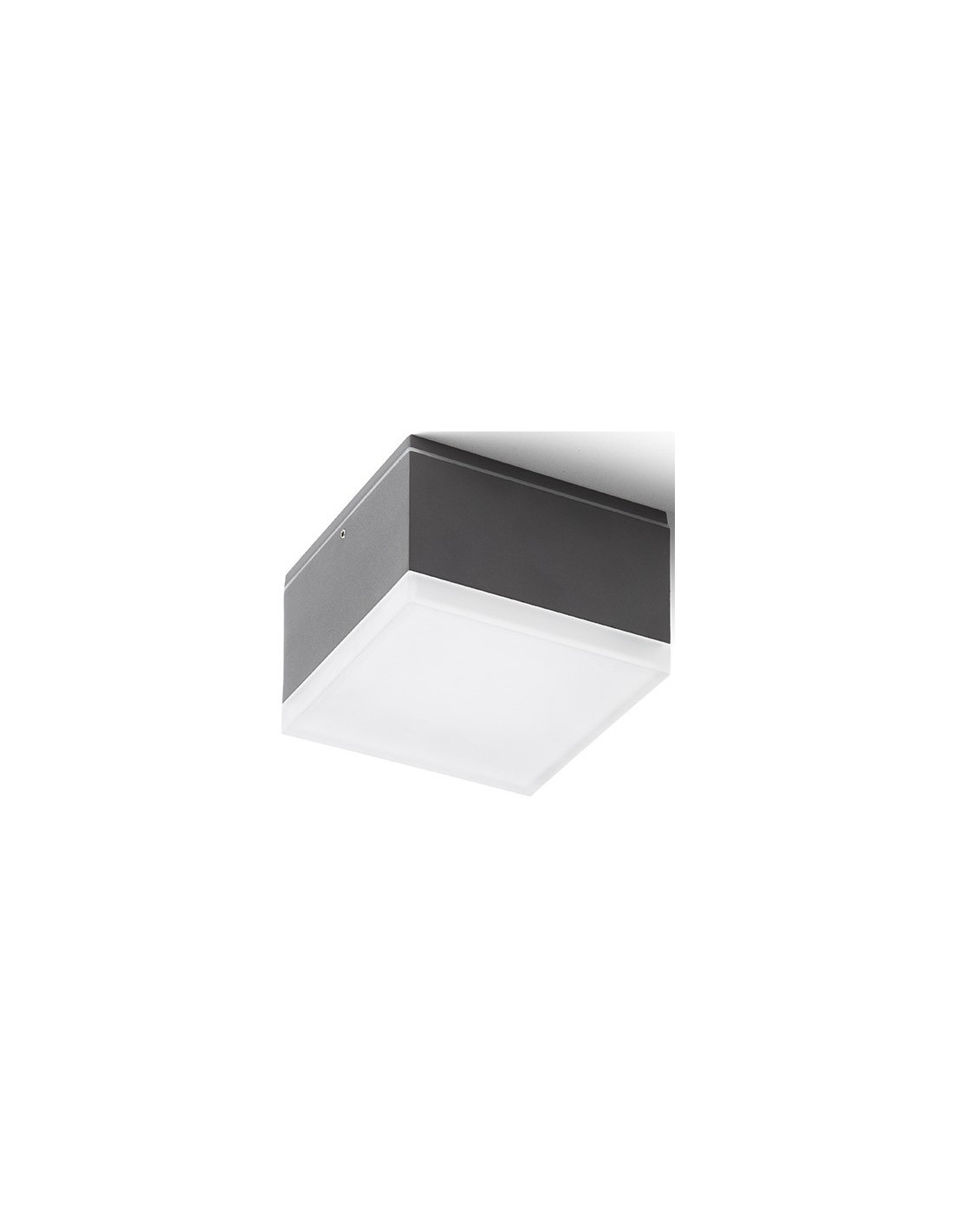 ORIN SQ Påbygningsspot til udendørs brug, udført i et design af antracitlakeret aluminium og satineret akryl. Lampen har indbygget LED lyskilde på 10W og måler 10,8 cm i bredde og dybde.