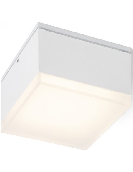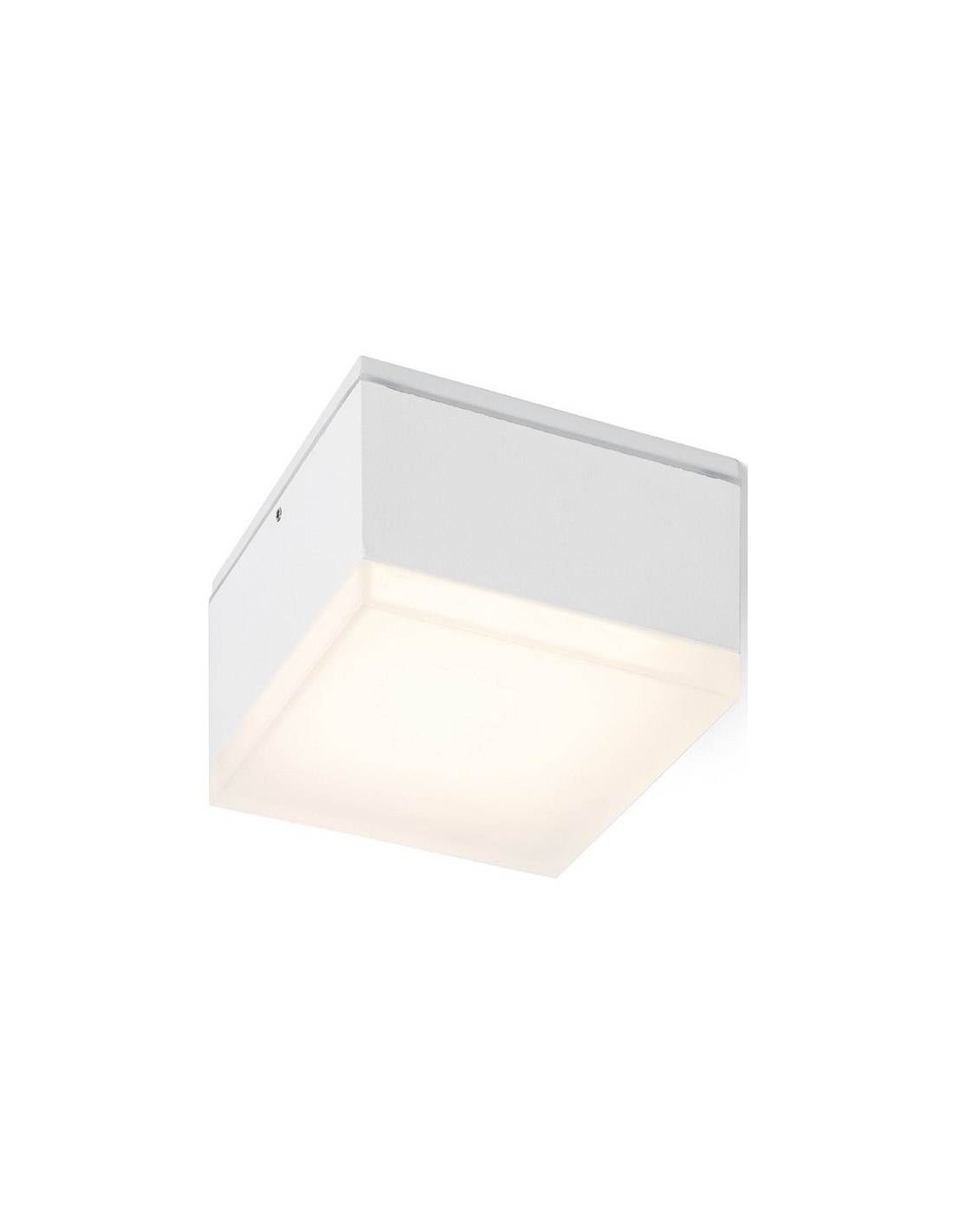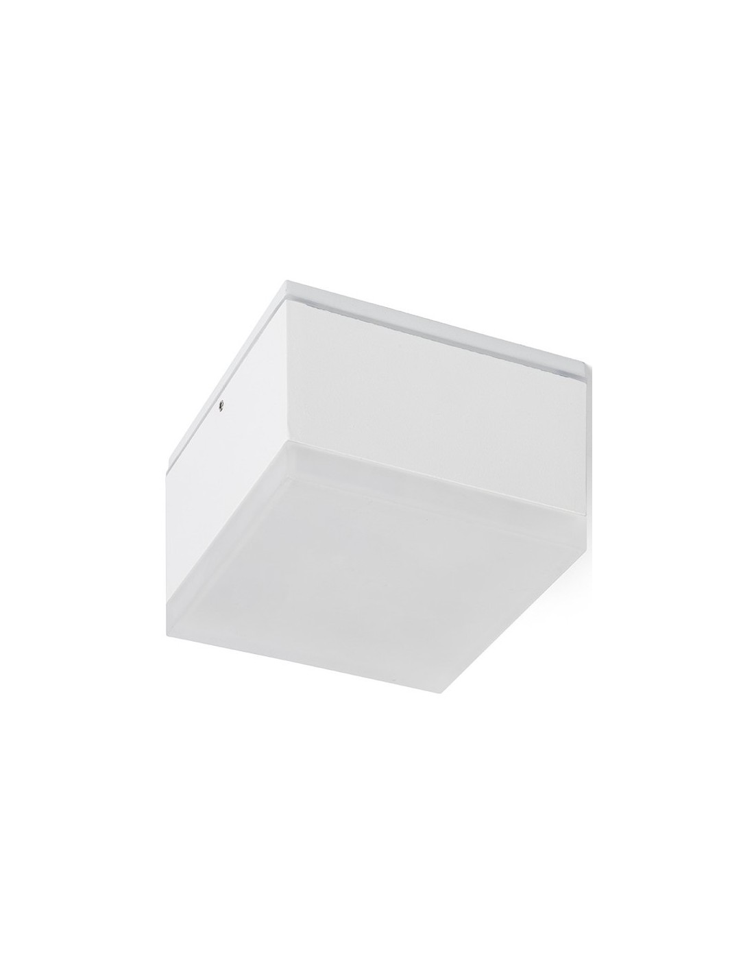 ORIN SQ Påbygningsspot til udendørs brug, udført i et design af hvidlakeret aluminium og satineret akryl. Lampen har indbygget LED lyskilde på 10W og måler 10,8 cm i bredde og dybde.