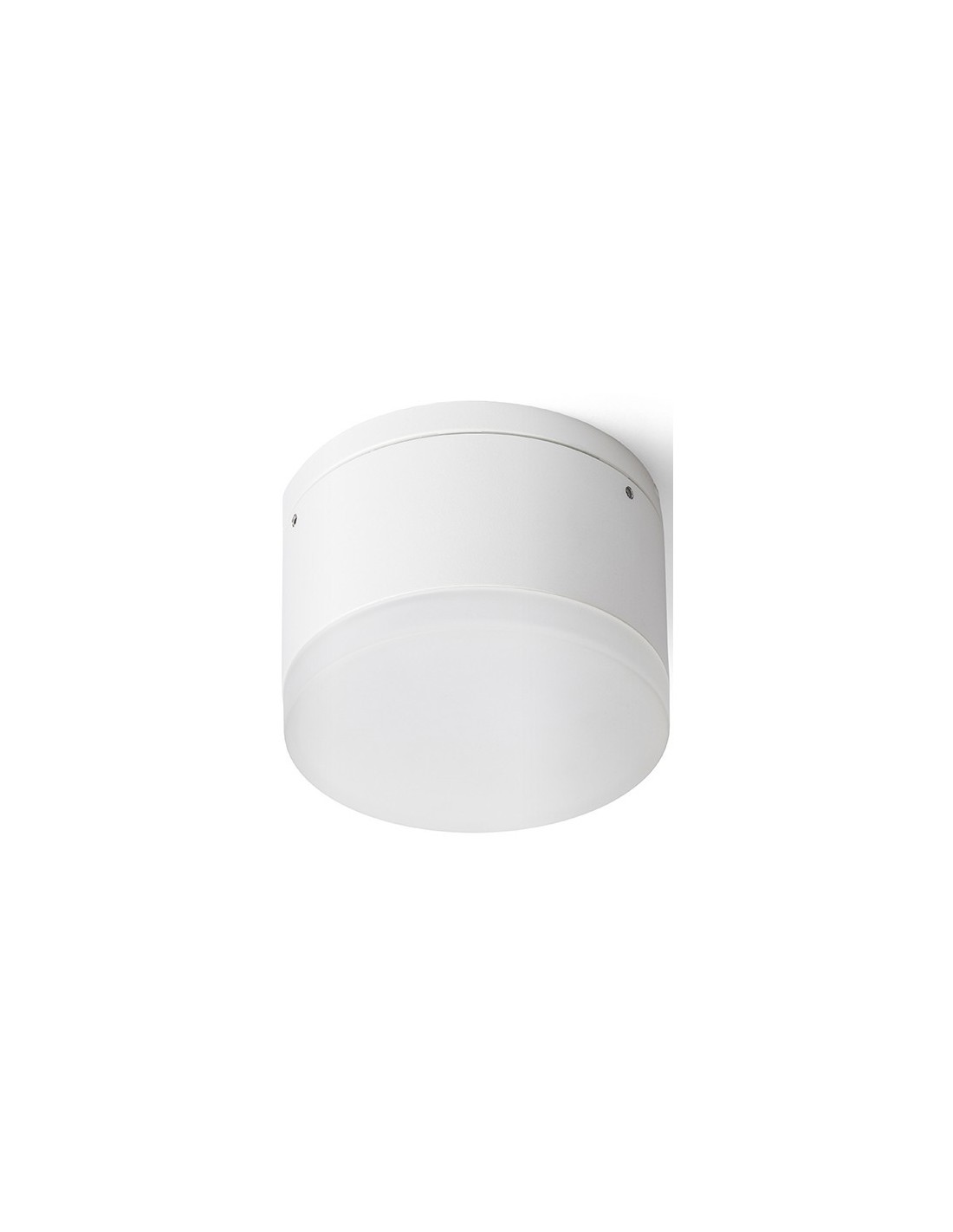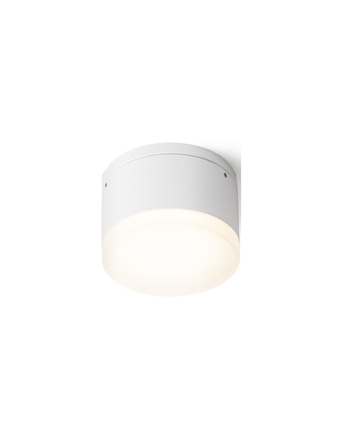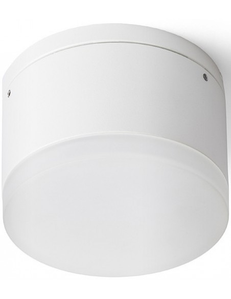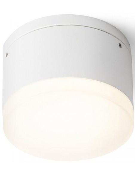 ORIN R Påbygningsspot til udendørs brug, udført i et design af hvidlakeret aluminium og satineret akryl. Lampen har indbygget LED lyskilde på 10W og måler 10,8 cm i diameter.