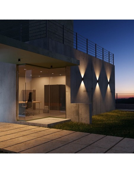 QUAD udendørs påbygningsspot udført i et design af aluminium og glas. Lampen måler 6 x 6 cm i bredde og dybde og anvender 1 x 3W COB LED lyskilde (Inkl.).