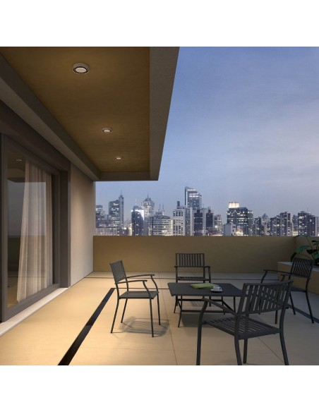 OKU udendørs loftlampe i et design fremstillet i aluminium og polycarbonat. Lampen måler 17,6 cm i diameter og anvender 1 x 14W SMD LED lyskilde (Inkl.).