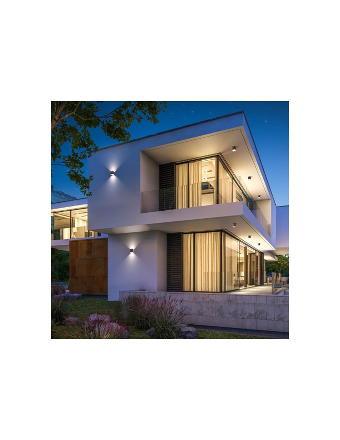 BETA udendørs påbygningsspot udført i et design af aluminium og glas. Lampen måler 9 cm i bredde og dybde og anvender 1 x 6W COB LED lyskilde (Inkl.).