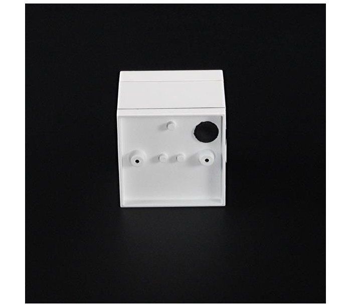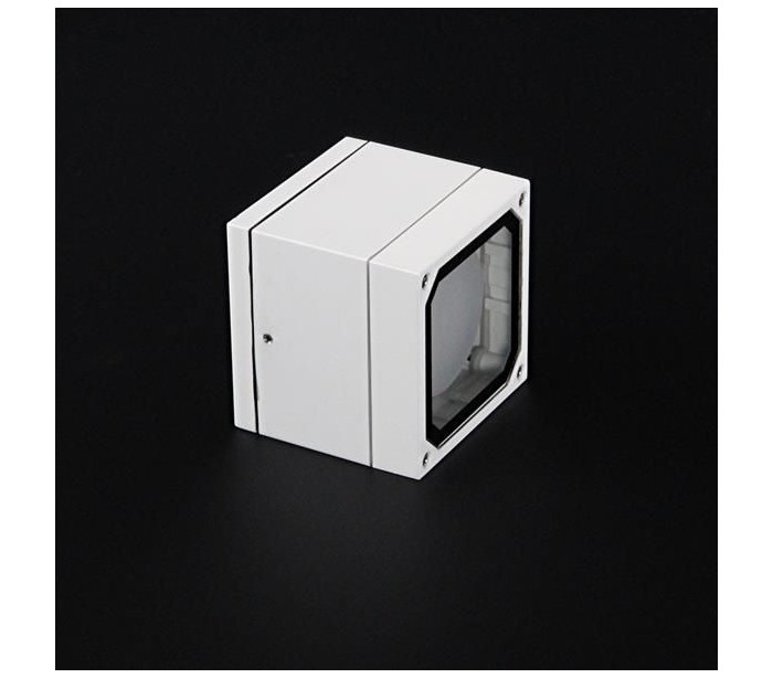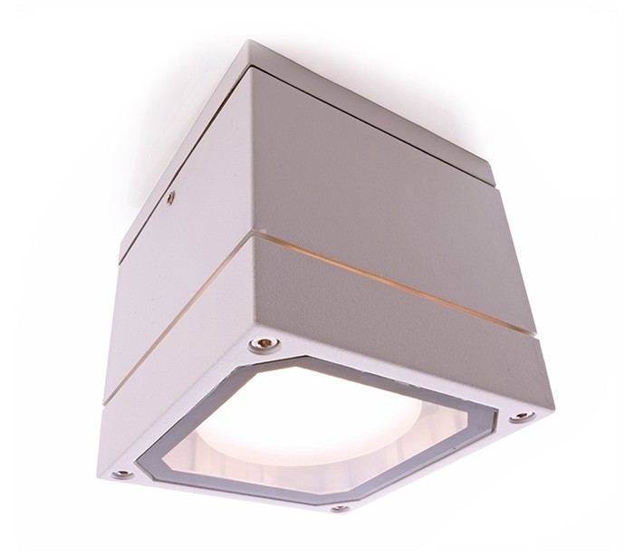 Påbygningsspot i et moderne kvadratisk design, fremstillet i hvid aluminium, der let tåler at hænge ude hele året. Lampen er særlig anvendelig på terrasse eller måske i udestuen, blot der er et udhæng, så passer lampen ind. Lampen måler 10,8 x 10,8 cm, med et fremspring på 10 cm. Lampen benytter 1 x GX53 lyskilde.