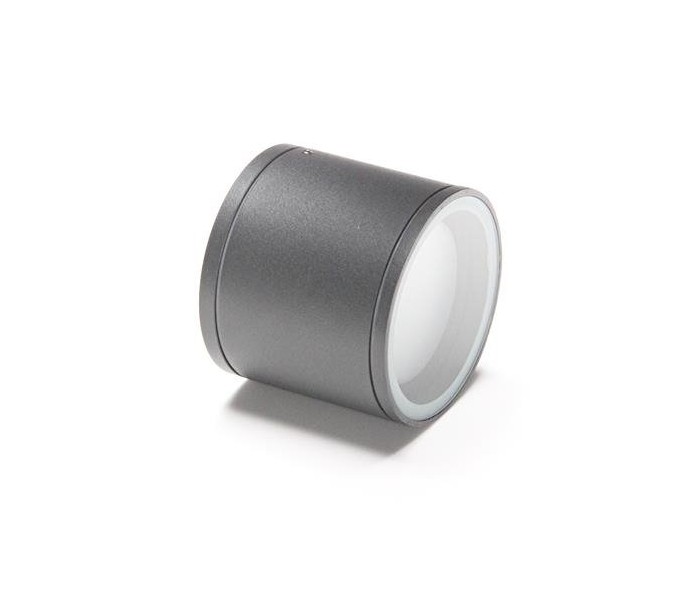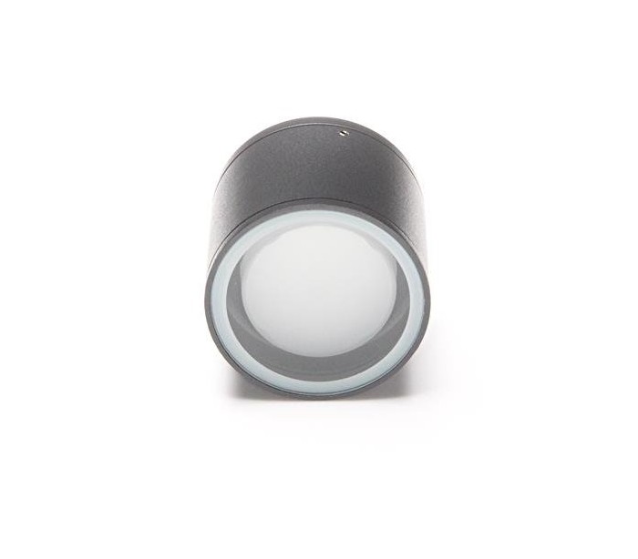 Påbygningsspot i et moderne rundt design, fremstillet i antracit aluminium, der let tåler at hænge ude hele året. Lampen er særlig anvendelig på terrasse eller måske i udestuen, blot der er et udhæng, så passer lampen ind. Lampen måler 10,8 cm i diameter, med et fremspring på 9,2 cm. Lampen benytter 1 x GX53 lyskilde.