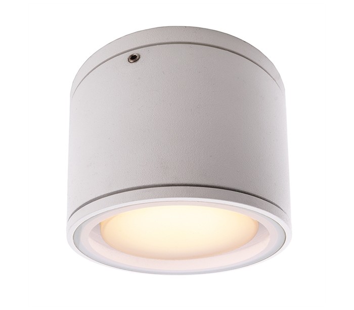 Påbygningsspot i et moderne rundt design, fremstillet i hvid aluminium, der let tåler at hænge ude hele året. Lampen er særlig anvendelig på terrasse eller måske i udestuen, blot der er et udhæng, så passer lampen ind. Lampen måler 10,8 cm i diameter, med et fremspring på 9,2 cm. Lampen benytter 1 x GX53 lyskilde.