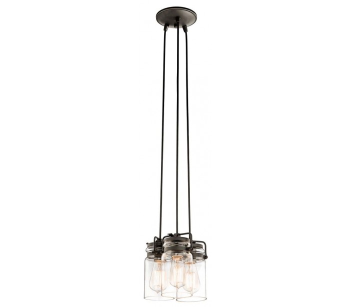 Brinley loftslampe i et industrielt design fra amerikanske Kichler. Loftslampen leveres til europæisk standard til 3 x E27 lyskilder. Lampen måler 21,6 cm i diameter og med en højde på 25,6 - 287 cm.