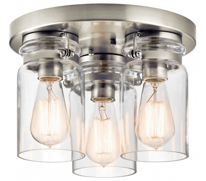 Brinley loftslampe i et industrielt design fra amerikanske Kichler. Loftslampen leveres til europæisk standard til 3 x E27 lyskilder. Lampen måler 28,2 cm i diameter og med en højde på 20,1 cm.