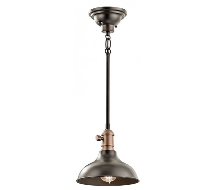 Cobson loftlampe i et industrielt design fra amerikanske Kichler. Lampen kan omdannes til semi-flush udgave og måler 22,5 - 123 cm i højden afhængig af opsætning. Lampen måler 20,3 cm i diameter og leveres til europæisk standard til 1 x E27 lyskilde.