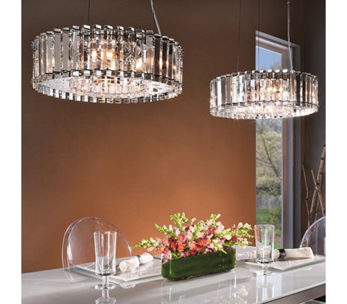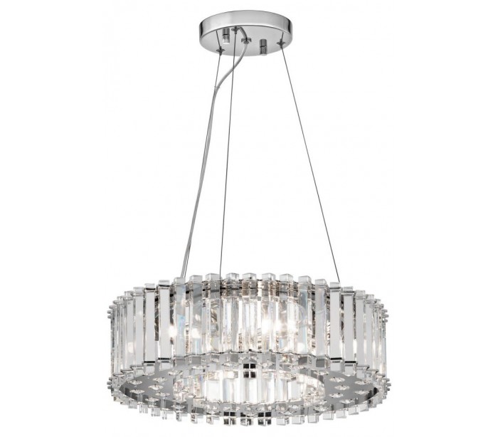 Crystal lysekrone i krystal og kromlakeret stål. Lysekronen er med IP44 og er også anvendelig på badeværelset. Lampen måler 43,8 cm i diameter og leveres til europæisk standard til 6 x G9 LED lyskilder (Inkl).