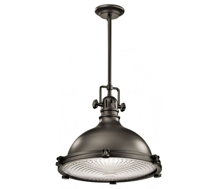 Hatteras pendellampe i et industrielt design fra amerikanske Kichler. Lampen måler 60,3 cm i diameter og 57 - 147 cm i højden og leveres til europæisk standard til 1 x E27 lyskilde.