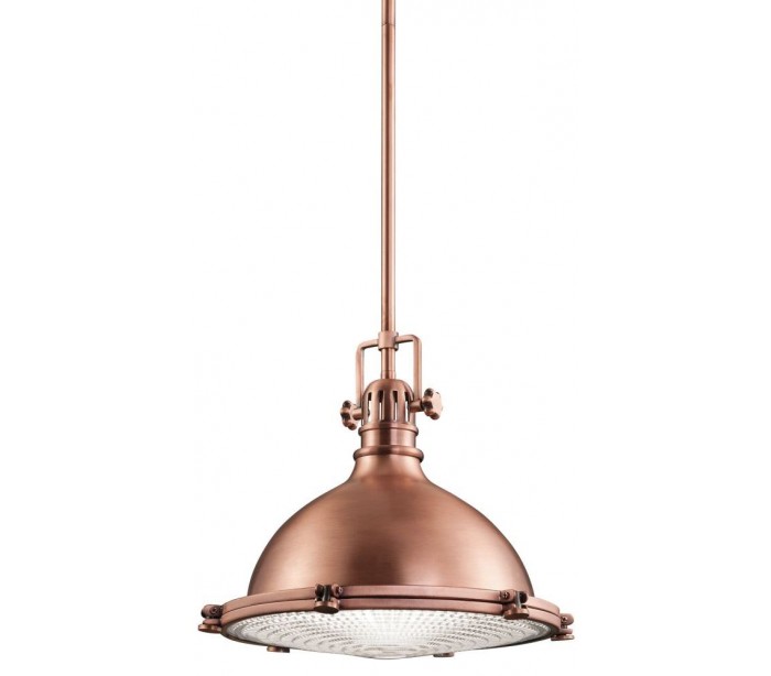 Hatteras pendellampe i et industrielt design fra amerikanske Kichler. Lampen måler 33,7 cm i diameter og 37 - 127 cm i højden og leveres til europæisk standard til 1 x E27 lyskilde.