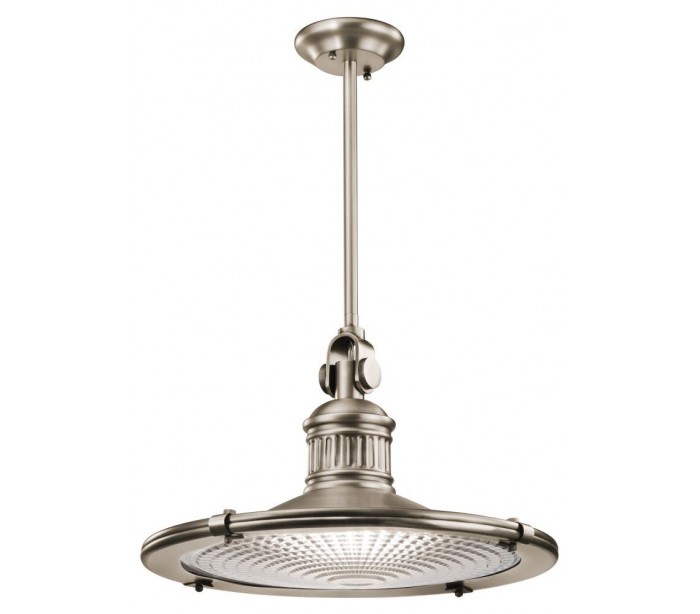 Sayre pendellampe i et industrielt design fra amerikanske Kichler. Lampen måler 45,7 cm i diameter og 37 - 127 cm i højden og leveres til europæisk standard til 1 x E27 lyskilde.