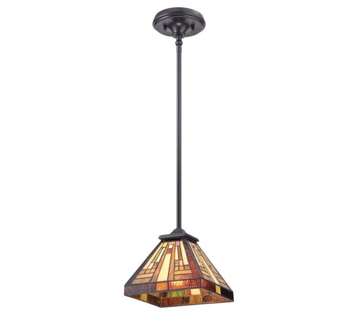 Stephen loftslampe i et smukt Tiffany design, fremstillet med ramme i mørk bronzelakeret metal og skærm i farvet glas. Loftlampen måler 20,3 cm i diameter og anvender 1 x E27 lyskilde, max. 100W. Der kan anvendes LED lyskilder.