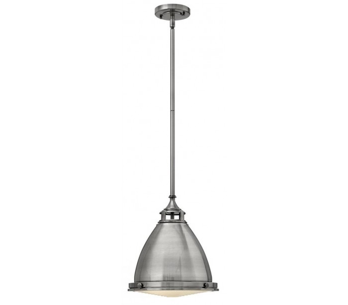 Amelia loftslampe i et amerikansk design fra Hinkley. Lampen måler 32,4 cm i diameter og leveres til europæisk standard til 1 x E27 lyskilde. Lampen er udført i poleret antik nikkellakeret stål og med skærm i hvid glas.