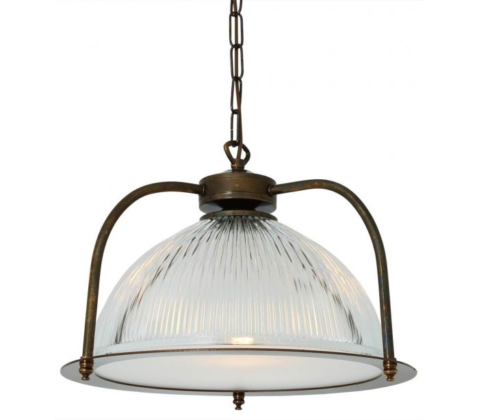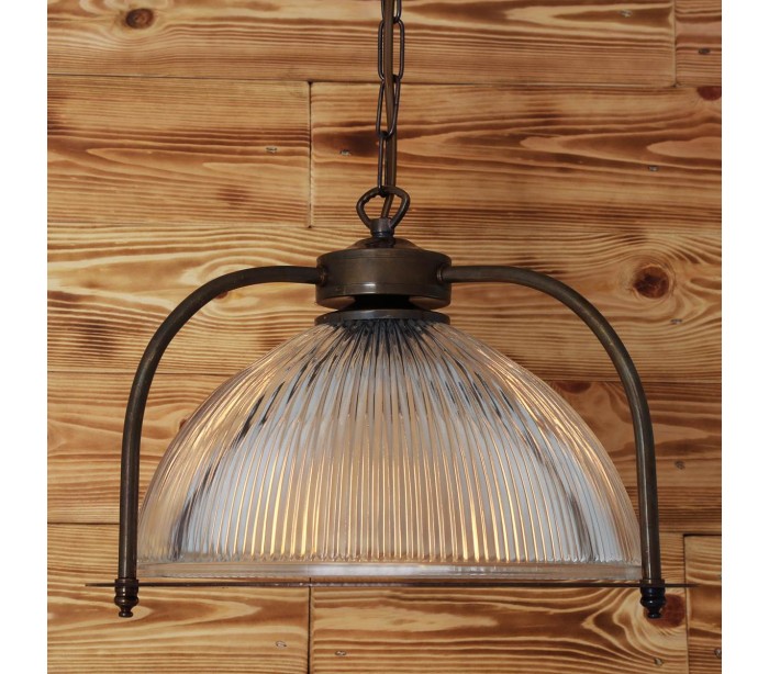 Bousta loftslampe fremstillet i et industrielt design i antik messing og glas. Lampen måler 35 cm i diameter og anvender 1 x E27 lyskilde (Ekskl.).