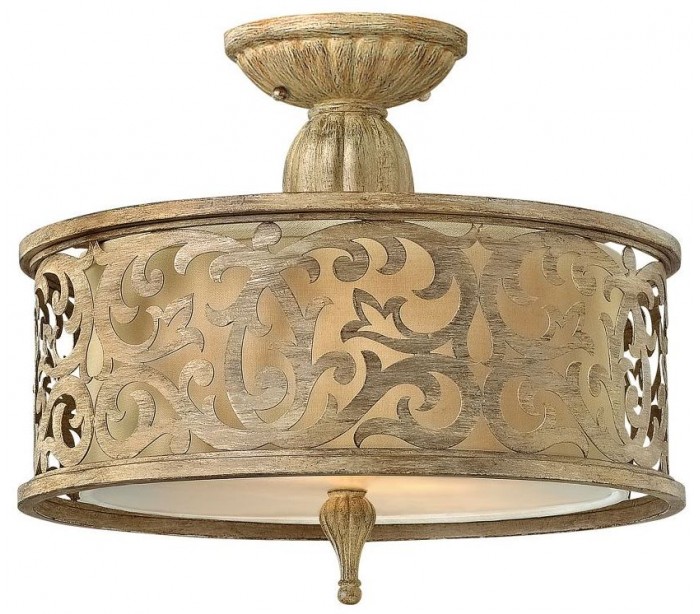 Carabel loftlampe i et amerikansk design fra Hinkley. Lampen måler 37,5 cm i diameter og leveres til europæisk standard til 2 x E27 lyskilder. Lampen er udført i et design af børstet champagne look i stål, linned og glas.