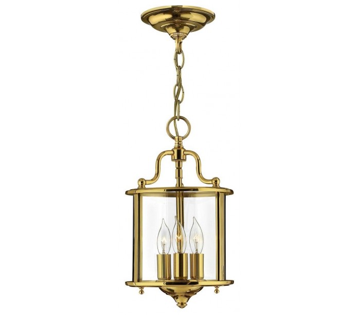 Gentry loftlampe i et amerikansk design fra Hinkley. Lampen måler 20,3 cm i diameter og leveres til europæisk standard til 3 x E14 lyskilder. Lampen er udført i poleret messing og glas.