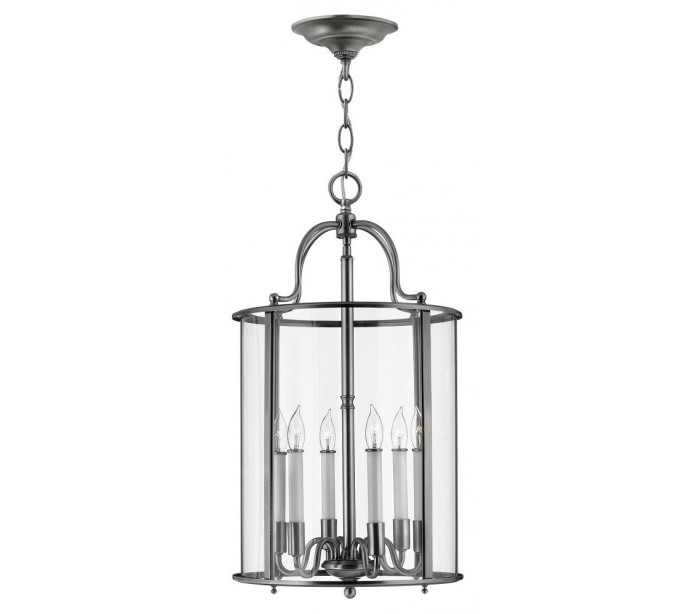 Gentry loftlampe i et amerikansk design fra Hinkley. Lampen måler 35,6 cm i diameter og leveres til europæisk standard til 6 x E14 lyskilder. Lampen er udført i et design af tinlakeret stål og glas.