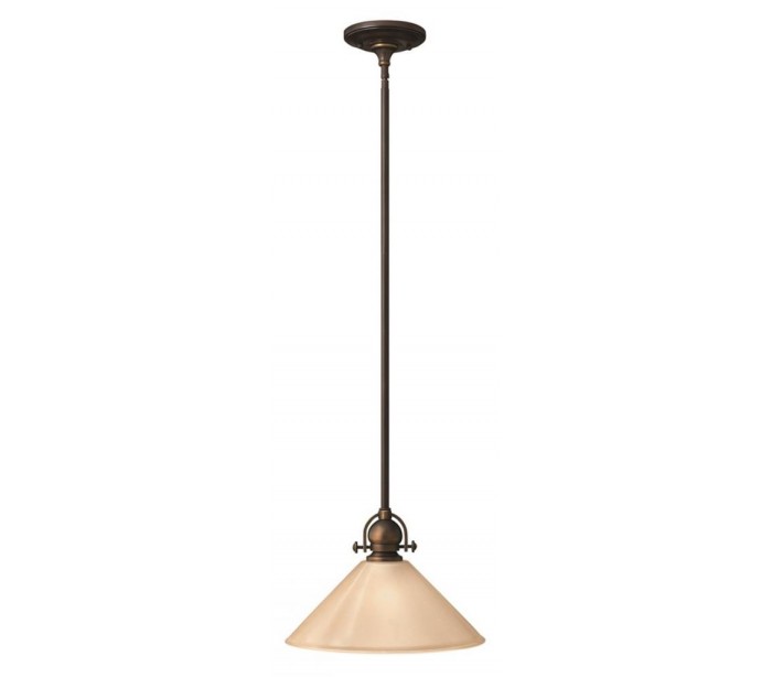 Mayflower loftlampe i et amerikansk design fra Hinkley. Lampen måler 35,6 cm i diameter og leveres til europæisk standard til 1 x E27 lyskilde. Lampen er udført i et design af aldret bronzelakeret stål og med skærm i ravfarvet glas.