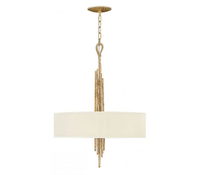 Spyre loftlampe i et amerikansk design fra Hinkley. Lampen måler 61 cm i diameter og leveres til europæisk standard til 6 x E14 lyskilder. Lampen er udført i et design af champagne guldlakeret stål og med skærm i beige organzatekstil.
