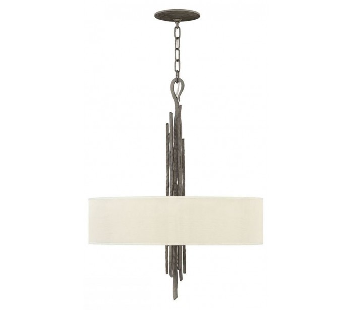 Spyre loftlampe i et amerikansk design fra Hinkley. Lampen måler 61 cm i diameter og leveres til europæisk standard til 6 x E14 lyskilder. Lampen er udført i et design af metallic mat bronzelakeret stål og med skærm i beige organzatekstil.