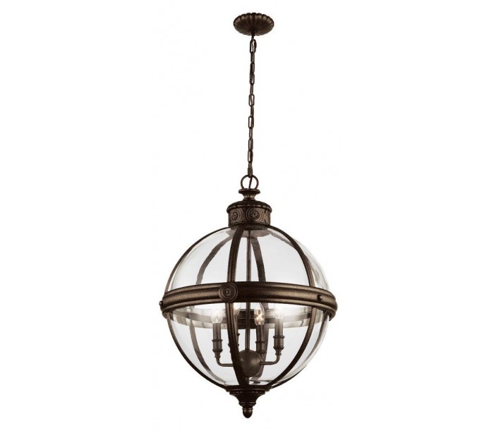 Adams loftlampe i et amerikansk design fra Feiss. Lampen måler 49,8 cm i diameter og leveres til europæisk standard til 4 x E14 lyskilder. Lampen er udført i et design af rustik bronzelakeret stål og glas.