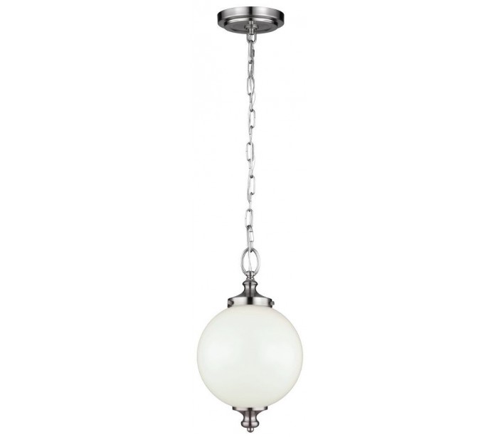 Parkman loftlampe i et amerikansk design fra Feiss. Lampen måler 21,6 cm i diameter og leveres til europæisk standard til 1 x E27 lyskilde. Lampen er udført i et design af børstet stål og hvid glas.