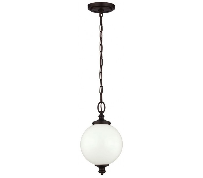 Parkman loftlampe i et amerikansk design fra Feiss. Lampen måler 21,6 cm i diameter og leveres til europæisk standard til 1 x E27 lyskilde. Lampen er udført i et design af rustik bronzelakeret stål og hvid glas.