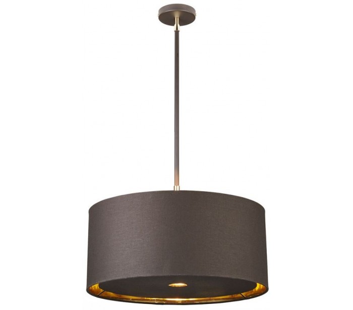 Balance pendellampe fra britiske Elstead. Lampen måler 45,5 cm i diameter og leveres til europæisk standard til 1 x E27 lyskilde. Lampen er udført i et design af brunlakeret stål og brun tekstil. Dertil detaljer i poleret messing, for at give lampen det sidste præg.