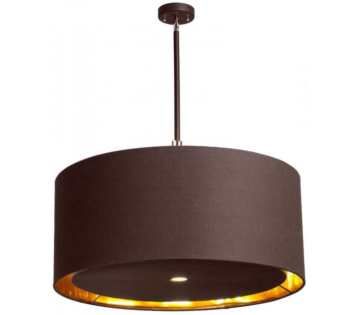 Balance pendellampe fra britiske Elstead. Lampen måler 70 cm i diameter og leveres til europæisk standard til 4 x E27 lyskilder. Lampen er udført i et design af brunlakeret stål og brun tekstil. Dertil detaljer i poleret messing, for at give lampen det sidste præg.