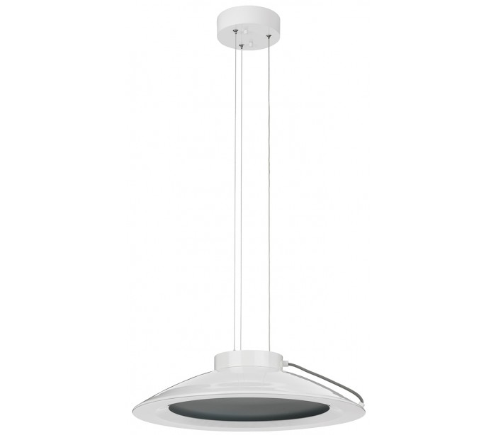 Europa pendellampe fra britiske Elstead. Lampen måler 49,8 cm i diameter og leveres til europæisk standard til 1 x integreret LED lyskilde. Lampen er udført i et design af hvidlakeret stål og er højdejusterbar.