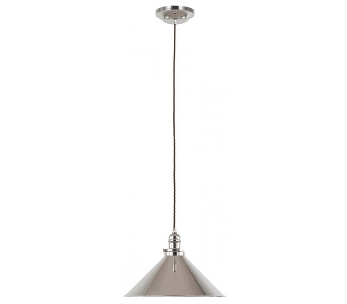 Provence pendellampe fra britiske Elstead. Lampen måler 37 cm i diameter og leveres til europæisk standard til 1 x E27 lyskilde. Lampen er udført i et design af poleret nikkellakeret stål.