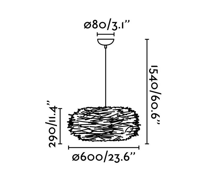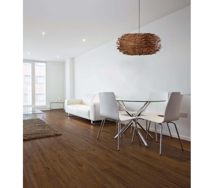 Loftlampe i et rustikt design, fremstillet i brun rattanflet. Lampen måler 60 cm i diameter og anvender 1 x E27 lyskilde på max. 60W (Ekskl.).
