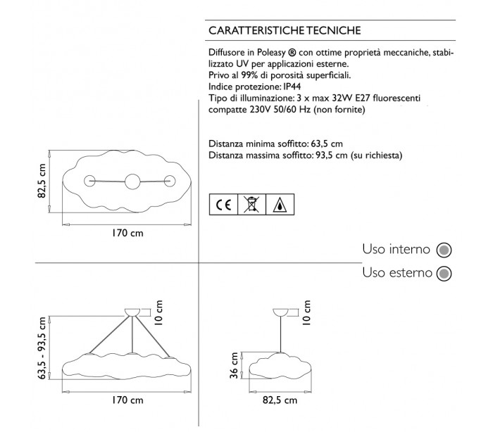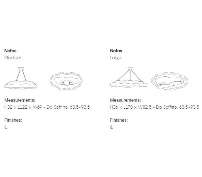 NEFOS loftlampe til anvendelse både inde såvel som udendørs. Lampen har beskyttelsesgrad 44, der gør den anvendelig udenfor. Lampen er fremstillet i Poleasy materiale og måler 170 x 82 cm i bredde og dybde.