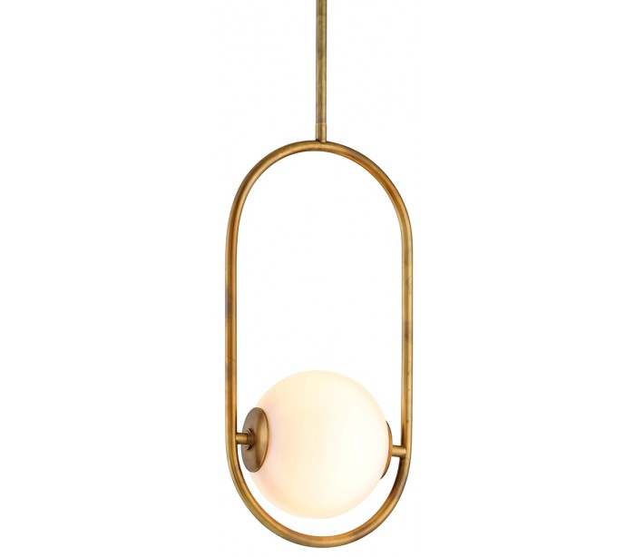 Everley loftlampe i et moderne udført design, fremstillet i antik messing og med skærm i hvid opalglas. Loftlampen måler 22 x 15 cm i diameter og anvender 1 x G9 lyskilde.