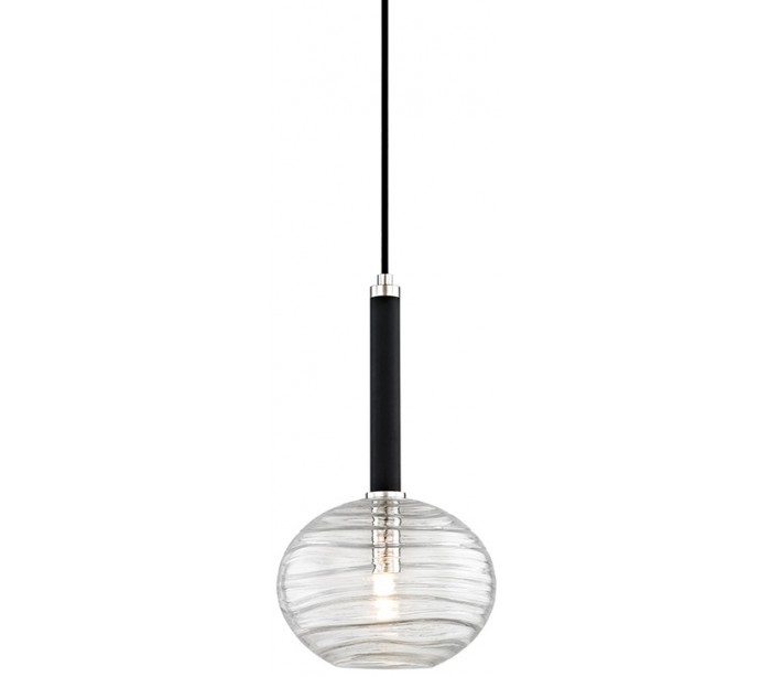 Breton loftlampe i et design fremstillet i klart glas og med detaljer i sort og poleret nikkel lakeret stål. Lampen måler 21,5 cm i diameter og anvender 1 x G9 LED lyskilde.