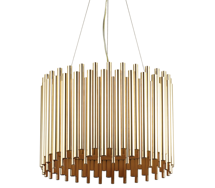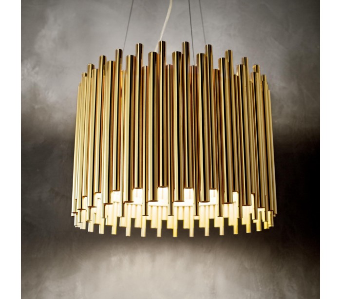 PAN loftlampe i et moderne design fremstillet i guldfarvet metal, med en skærmdiameter på 47 cm og anvender 5 x E27 lyskilder.