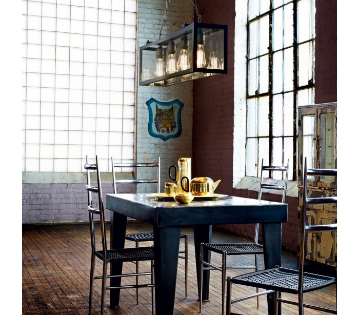 IGOR loftlampe i et industrielt design fremstillet i sortlakeret metal og klart glas. Lampen måler 91,5 x 17 cm i diameter og 165 cm i højden (max.) og anvender 4 x E27 lyskilder (ekskl.).
