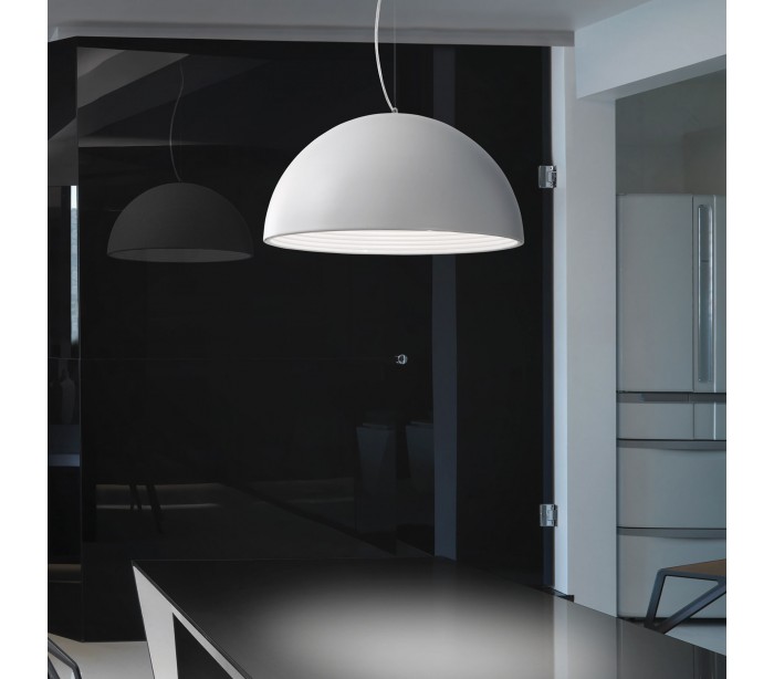 DON loftlampe i et moderne design fremstillet i mat hvidlakeret metal. Lampen måler 50 cm i diameter og 140 cm i højden (max.) og anvender 1 x E27 lyskilde (ekskl.).