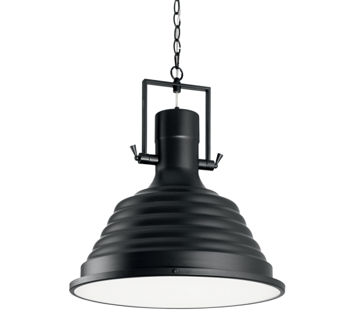 FISHERMAN loftlampe i et industrielt design fremstillet i sortlakeret metal. Lampen måler 48,5 cm i diameter og 145 cm i højden (max.) og anvender 1 x E27 lyskilde (ekskl.).