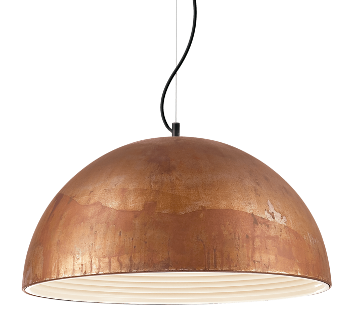 FOLK loftlampe i et råt design fremstillet i corten lakeret metal. Lampen måler 50 cm i diameter og 150 cm i højden (max.) og anvender 1 x E27 lyskilde (ekskl.).