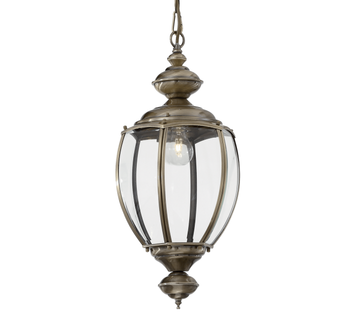NORMA loftlampe i et industrielt design fremstillet i antik messinglakeret metal og klart glas. Lampen måler 25 cm i diameter og 115 cm i højden (max.) og anvender 1 x E27 lyskilde (ekskl.).