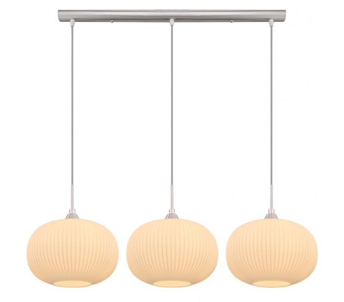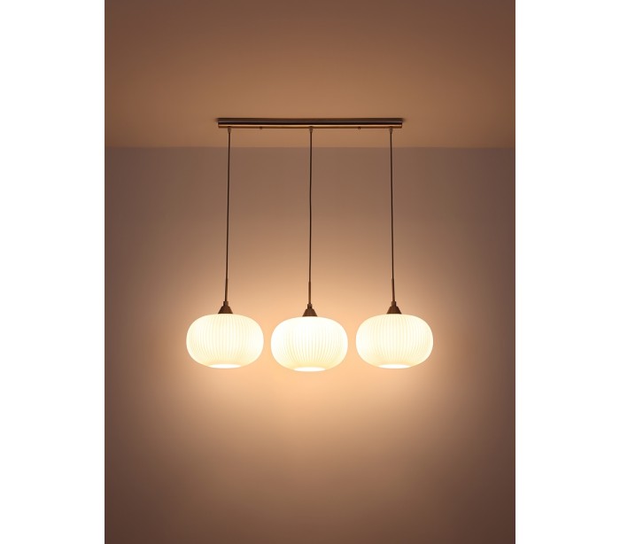 Loftlampe i et moderne design, fremstillet i opalhvid glas. Lampen måler 96 cm i højden og 120 x 30 cm i bredde og dybde og anvender 3 x E27 lyskilder (Ekskl.).