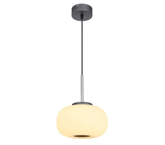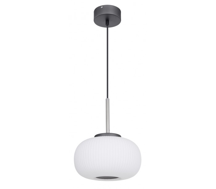 Loftlampe i et moderne design, fremstillet i opalhvid glas og antracitfarvet metal. Lampen måler 120 cm i højden og 24 cm i diameter og anvender 1 x 12W LED lyskilde (Inkl.).