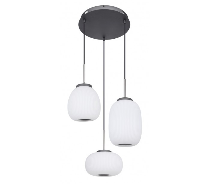 Loftlampe i et moderne design, fremstillet i opalhvid glas og antracitfarvet metal. Lampen måler 120 cm i højden og 49 cm i diameter og anvender 1 x 45W LED lyskilde (Inkl.).