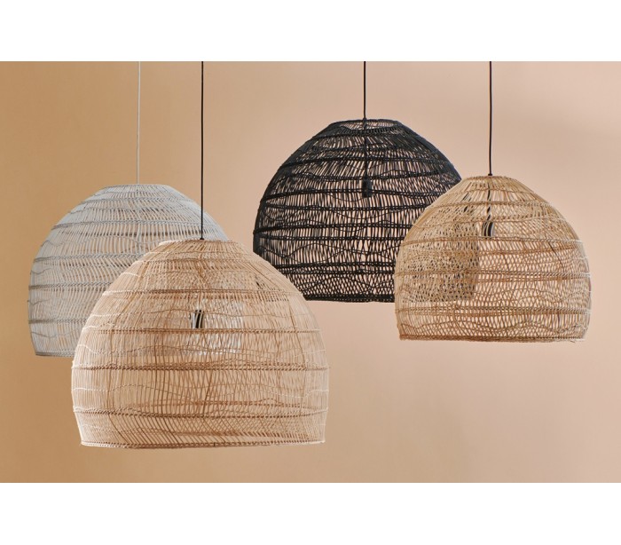 Loftlampe i et smukt design, fremstillet i naturfarvet rattanflet. Lampen måler 80 cm i diameter og 135 cm i højden og anvender 1 x E27 lyskilde (Ekskl.). Skærmens egenhøjde er 60 cm og med 75 cm ledning.