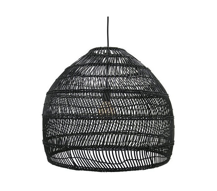 Loftlampe i et smukt design, fremstillet i sort rattanflet. Lampen måler 60 cm i diameter og 135 cm i højden og anvender 1 x E27 lyskilde (Ekskl.). Skærmens egenhøjde er 50 cm og med 85 cm ledning.