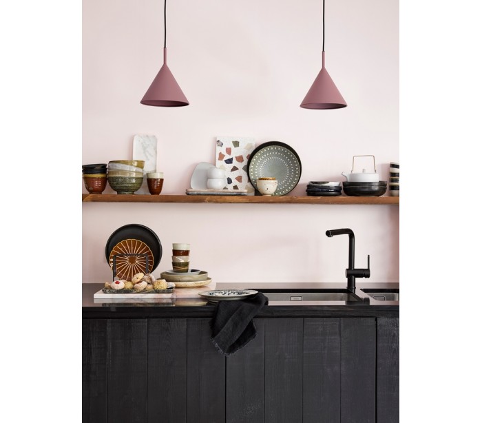 Loftlampe i et stilrent design, fremstillet i mat lillalakeret metal. Lampen måler 22 cm i diameter og 175 cm i højden og anvender 1 x E27 lyskilde (Ekskl.).